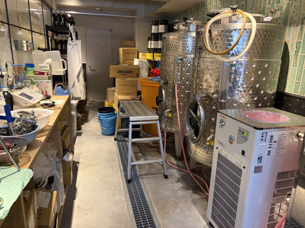 今年、屋上で収穫した葡萄を実際に醸造する場所でもあります。